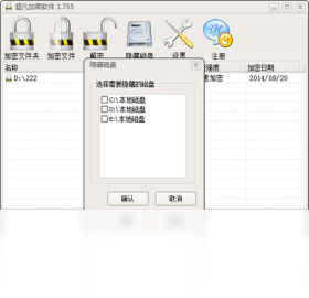 超凡加密软件提供专业易用加密方案,无需学习即可上手,轻松给电脑文件夹/文件加密。软件功能:1. 支持加密文件夹/文件/硬盘磁盘数据;2. 支持加密U盘/内存卡/移动硬盘;3. 支持加密word/excel/pdf/cad/ps等电子文档;4. 支持电脑xp/win7/windows 8系统;5. 支持局域网共享文件加密。