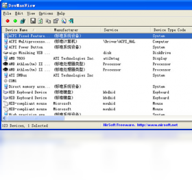 DevManView是一款用列表方式显示电脑硬件设备的工具。可方便启用或停止硬件,定位到注册表,亦可显示非常详细的硬件信息,包括驱动程序版本、inf文件名、硬件注册时间等。