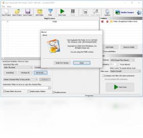 免费的重复文件查找工具。可方便的搜索某一文件夹中重复的文件。Fast Duplicate File Finder基于快速的二进制比较法则判断文件内容是否为重复文件,即使有不同的文件名也不受影响。支持图片、视频、音乐和文本的预览,也可以二进制模式预览。扫描完毕后,软件自动选定创建时间较早的为待删除文件。同时Fast Duplicate File Finder的自动标记法则也支持高级设置,包括设置扩展名、文件大小、文件日期、文件名等,也可以设置需要排除的文件夹,从而可以保护系统文件和系统文件夹。