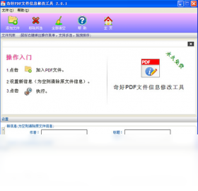 一款批量修改PDF文档作者、标题、主题、关键字等信息的免费软件。您的PDF文档,是不是没有添加作者、标题、主题、关键字等文件信息?下载的PDF文档,含有作者、标题、关键字等作者信息?用这个软件,可以为您的PDF文档批量添加作者、标题、关键字等信息,去掉或修改PDF文档中的作者、标题、关键字等信息。