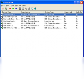 用于USB设备管理的绿色软件。可以列出当前连接到你的计算机上或者曾经连接到你的计算机上的所有USB设备,根据列出的设备的名称和描述,该软件显示了串口号(如果提供),设备添加的日期以及最后连接的日期,VendorID以及其它信息。你还可以选择断开或者卸载列表当中的任何设备,以及导出该列表为Text/HTML或者XML格式。USBDeview还可以被用于从一台远程计算机(需要访问权)通过命令行收集USB设备。