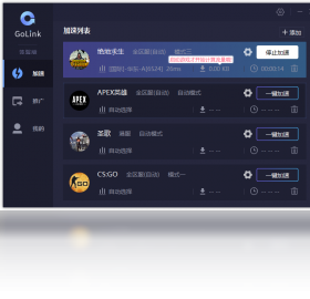 GoLink加速器是一款专业的游戏加速器,免费为国内玩家提供游戏加速服务,支持Origin、Steam、Uplay等平台游戏大作,游戏专线加速通道能够有效降低延迟、避免卡顿、杜绝掉线、轻松联机,界面简洁,操作方便!
