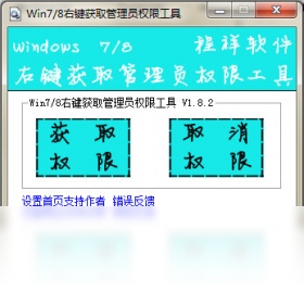 本程序不能将你当前账户改为超级管理员账户,是将文件处理成你当前账户所有,这样你就能对文件进行操作了。使用方法:点击获取权限在右键菜单会出现一个获取管理员权限的选项,点击,系统会将文件处理成你当前账户所有,点击取消权限右键菜单则没此选项。