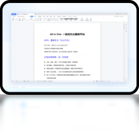 WPS,重新定义办公方式。花3分钟,了解All in One 的办公方式,对你的办公效率提升有极大帮助,因高效节省下来的时间,会让你在职场上更从容、更自由。文档处理领域,进一步拓宽:文档、表格、演示、PDF的处理能力更强、效率更高;提升脑图、流程图的使用体验,让思维工具更好用。云服务,打造专属你的资料库:1个WPS账号,联通你的资料库,登录后各种设备都能查看;文档云同步,最近打开过的文档同步到云,电脑、手机、平板随时随地处理。内容服务,更优质精品:稻壳模板,更新更全更优质的办公资源服务,下载即用,方便快捷。