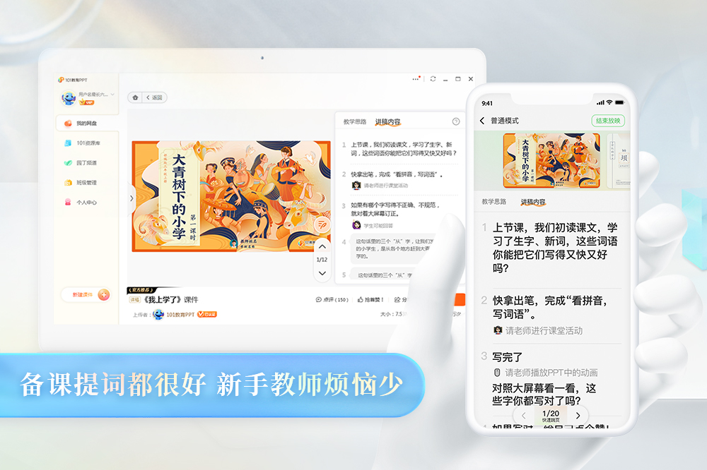 101教育PPT是一款专业服务教师的备授课一体化教学软件,提供PPT课件制作与教学所需的资源、互动工具、学科工具等多元化功能,并提供多端录课、云端存储等教学常用功能,辅助老师轻松备课、高效授课。手机端和电脑端配合使用,可远程控制PPT,手机拍照、摄像快速投屏,实现走动教学。 101教育PPT在线学习平台“七点半学苑”,为老师们提供了信息化教学软件、前沿教学经验、信息教学竞赛、教师专业发展、K12心理健康等多种类型的课程,助力教师信息化教学能力提升。