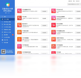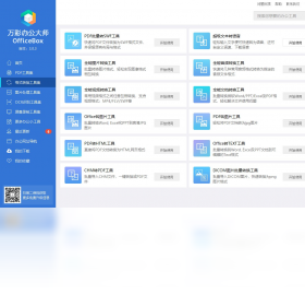 免费小巧的办公小工具百宝箱。万彩办公大师OfficeBox是一款由万彩科技研发的免费办公工具软件超级套装,几乎可以满足日常各种办公工具需求;它内置了60多款强大的,无任何广告及插件的绿色办公组件,如PDF工具集;文档/音视频/图片转换工具集;OCR工具集;屏幕录制工具集;图片处理工具集;文件处理工具集等。所有的套装工具不需要安装,直接可以绿色加载启动,省去了用户为安装各种办公软件而寻找工具、安装及卸载的麻烦。
