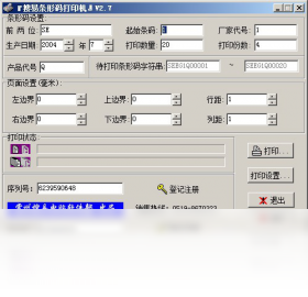 国产简体中文版条形码打印输出工具软件。按照国家39条形码标准设计,只要输入产品代号、企业代号、生产日期和条码数量,软件自动在普通打印机上打印出所有条码标签,根据纸张和条码大小,你可以轻松调节打印页面边距和行距,获得最佳打印效果。软件操作简便,是制造企业、商场、超市和个人业主打印商品条形码的绝好工具。