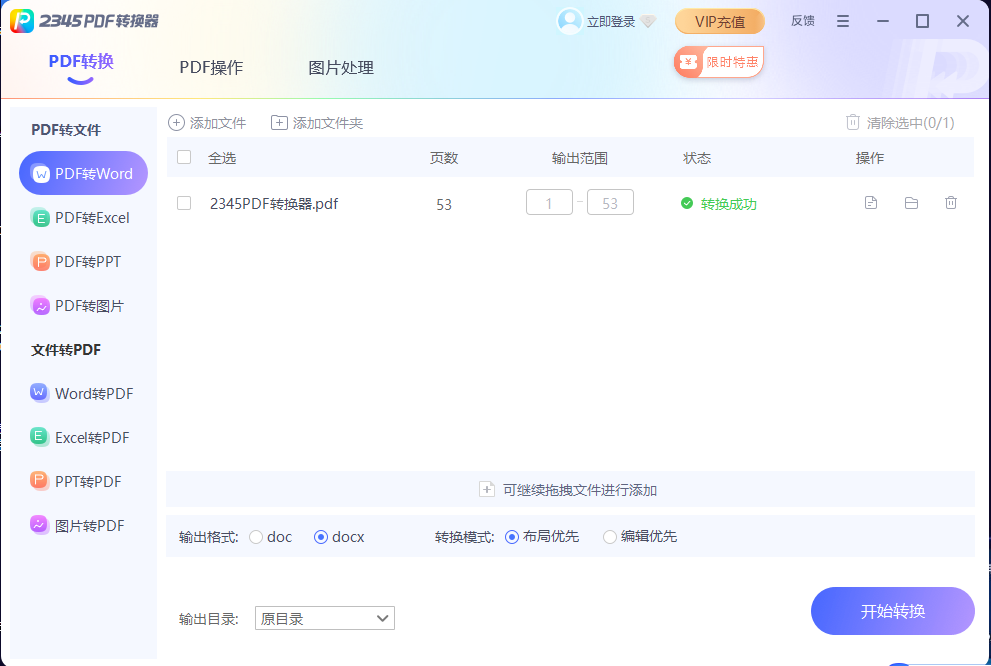 2345PDF转换器,支持PDF文档和Word、PPT、Excel、图片等多种文档之间的互相转换,支持PDF转换成Word、图片、Excel、PPT等文档,同时也支持把word、ppt、excel、图片等文档转换为pdf文档。可以一键批量转换,转换后的文件可以在word、powerpoint、excel中打开直接编辑。此外还支持PDF拆分、PDF合并、PDF添加和解除密码、OCR文字识别、图片处理等特色功能。 2345PDF转换器,支持转换的文件格式丰富、转换质量好、界面操作简单。你只需要把pdf文档拖到软件主窗口,然后点击“开始转换”按钮即可轻松完成转换,最大精准度地保留所有原始数据和布局。不同类型的文件皆可适用,下载使用即可迅速提高工作效率。