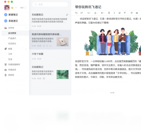 讯飞语记支持图文编排、文字加粗、段落大小标题、引用等多种富文本编辑模式,PC端编辑文档更畅快!在线语音输入功能、录音速记等特色功能也一并支持,是您写小说、写日记、采访、记事的必备神器!