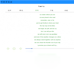 去KTV还是只会唱中文歌?没有考试就不想学习英语,缺乏兴趣?快来爱语吧听歌学英语吧,嗓音甜美的美女主播为你逐句讲解英文歌曲,让你提高英语学习兴趣,使你在一个轻松、欢快的氛围中学习英语。在听读原汁原味的英文歌曲的同时,飞速地提高英语的听读能力,快乐地学习英语词汇、语法和用法。优美的音乐,炫酷的界面,让你在听觉和视觉上获得充分的愉悦。数十万用户的选择,你值得拥有。