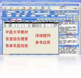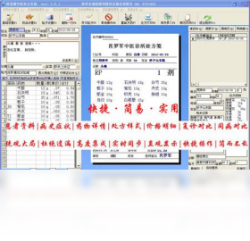 快易通中医处方系统,界面简洁相扣,窗口高度集成,处方直观显示。程序结构清晰,傻瓜化设计,简单小巧,操作非常简单,一目了然,所见所得。电脑新手,也可以很方便的用它开处方! 1.全键盘快捷键操作。所有操作回车确认! 2.复诊病例,同病病例实时对照显示,方便医师对比病例参考开方。 3 处方样式直观明了显示。 4.开药直接表内输入(划价),简单快捷。 5.开方完后改价改剂随意,很好应付实际工作 。 6.病史症状记录和开方药在同界面。 7.可同步操作如边开方,边经验方入库,边调药价。 8.可多个验方组合开具! 9.旧处方老处方填入式套打印,省纸省墨省钱又省心。