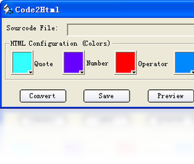 Code2Html是一款实用的小工具,利用它您可以将C/C++源代码转换为html格式文本,您可以按您的习惯调整各种元素的颜色,如:关键字、操作符、数字等。