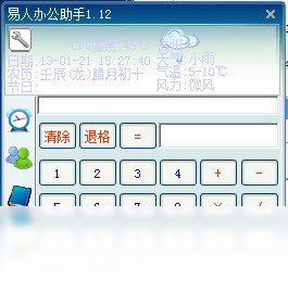 实时管理:贴边隐藏、定时关机、电脑时钟自动校准、整点报时、实时显示时间/农历/节日/CPU温度/天气预报、QQ临时会话;定时闹铃:对内容遗忘的事,通过此项设置电脑会到时自动提醒;通讯录管理:通讯录的添加、修改、查询、按字母分类、置顶/置底、自动排序等。