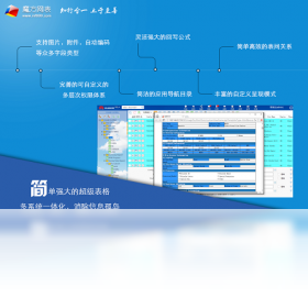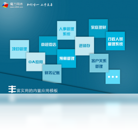 基于web浏览器的通用信息管理软件。你可以在5分钟内创建自己的web数据库应用,并且和其他人分享。你可以在任何地方通过互联网访问你的魔方网表。魔方网表堪称网络版excel,是解决excel共享问题的完美方案。非常适合网络协同办公应用。