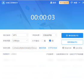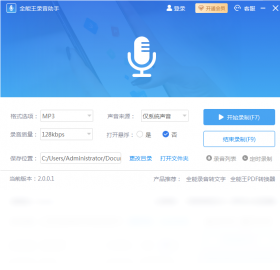 全能王录音助手是一款非常实用的录音软件,可以录制用户电脑所有声音类型,还可以录下麦克风设备声音文件,完美满足用户对音乐不同需求。软件界面清晰,操作简单,看起来一目了然,软件支持多种音频格式录制,如:mp3、wav、mp4等,即可实时录制您想要的音频。
