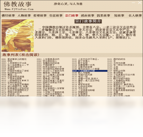 佛教故事包含佛经故事,人物故事,哲理故事,生活故事,宗们故事,感应故事,因果故事,短故事,名人秩事 九大分类。伴随优美的背景音乐仔细阅读,深入体会,感悟生活,善待一切。心胸无比宽阔。