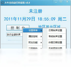 大牛全自动打铃系统只需要一台能运行Windows的电脑,加一台扬声器,即可组合成为一个功能强大的工厂、企事业单位、学校全天候全自动打铃系统。