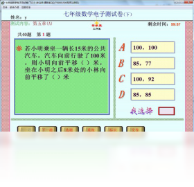 《七年级数学电子测试(下)》是导航星工作室制作的电子测试系列软件之一。本软件为新课标人教版,题库中所选试题题量大,题目精,实现电脑组卷、鼠标答题、自动判卷、公布答案等一系列环节。是学生学习、家长督促、教师检测的好帮手。该软件是一个测试系统。可用于学生进行单元自测或教师组织模拟考试。题库中所选试题以新课标为指导,与人教版新教材同步。