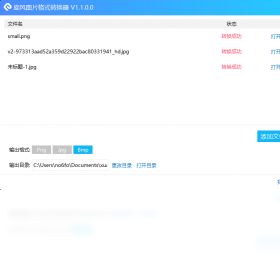 旋风图片格式转换器是一款用于图片格式转换的免费软件。支持png转jpg、png转bmp、jpg转png等各种图片格式转换,未来还会支持图片压缩。PDF转换等。