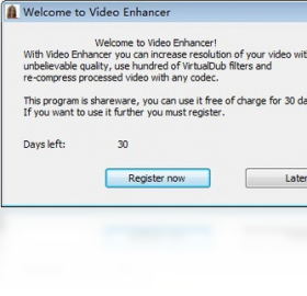 通过使用 Video Enhancer 强加视频分辨率以极大的提升其品质,可以调用绝大多数 VirtualDub 滤镜及任意编解码器进行重压缩处理。可免费试用30天。