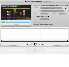 Acala DVD Audio Ripper是一款音频截取软件。从你喜欢的DVD视频电影中截取声音文件并保存为mp3,wav,wma格式。它是一款非常容易上手的软件,支持转换完毕自动关机。