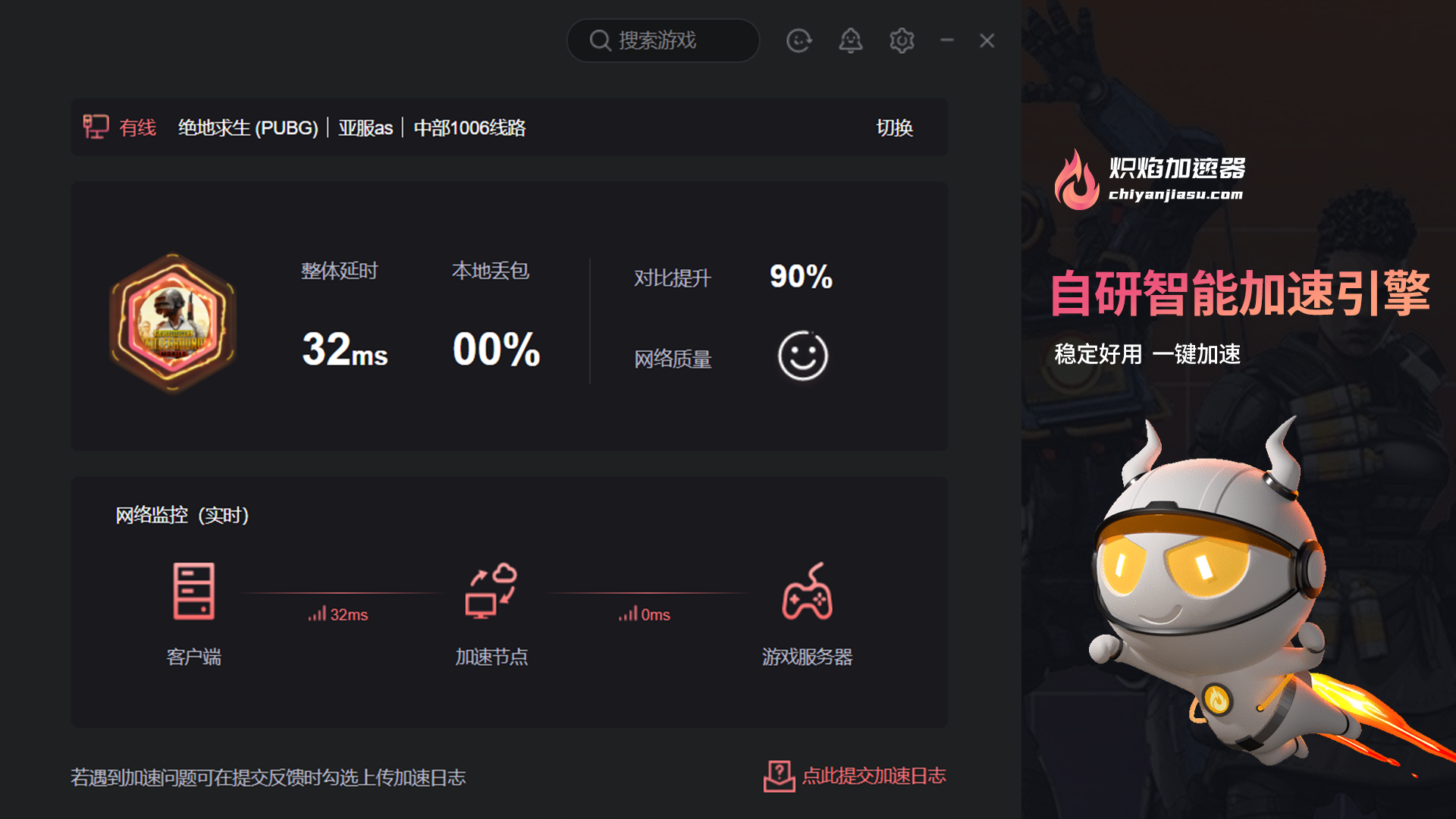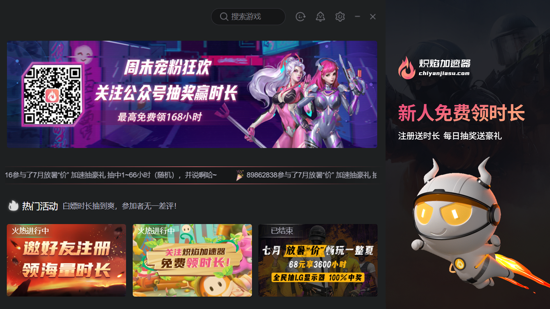 【炽焰加速器是一款为国际游戏量身定做的加速产品,专门解决用户在游戏过程中遇到的延迟飙升、掉线、加载缓慢等一些列问题,帮助提高游戏的稳定性,告别卡顿烦恼,是主流游戏加速器之一。