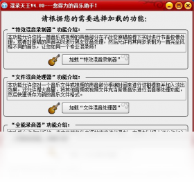 混录天王是一款全能混音与录音软件。一方面是强大的录音软件,支持WAV/WMA/MP3等流行格式的直接保存,另一方面它又是强大的变声软件,它可以将一首大家熟悉的音乐在您的声调、音色、快慢节奏处理下变得具备全新的风格,让人惊叹不已。