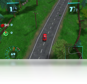 三维视角的赛车游戏。具有赛事和单人游戏两种模式。赛事模式即巡回赛,玩家在赢得第一条赛道后,新的赛道随之解开。单人模式可选择任意一条赛道。上下键控制赛车油门及刹车、倒车,左右键控制赛车方向,Ctrl键施放地雷,空格键发射导弹。