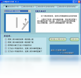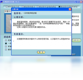 一款心理测试类游戏。与其它的心理测试软件不同,本软件所有的题目都来自具体的生活场景,图文并茂,饶有趣味。每一道题目都有助于发掘你的潜意识。你可以抱着轻松的、游戏的心情来做它,而同时又能够从结果分析中认识到真正的自己。