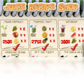 “疯狂果汁”是一款排列消除游戏,女主角Maria厌倦了快餐食品和苏打汽水,于是,她决定开设一家果汁吧,将更为健康的饮料带给城市中的人们。从街头小店到超级市场,帮助Maria制作出客人们满意的果汁。