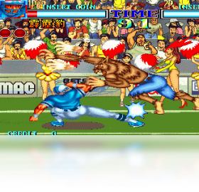星宿会战,亦名星宿格斗、黄飞鸿,经典的格斗游戏,对其完美模拟的破解艰辛过程远远超过了游戏本身的意义。时隔18年,终于在模拟器上重温这个已被脑补为神作的作品。在这作中,有两个在格斗游戏中很少出现的中国角色--黄飞鸿和花木兰,以及游戏中的中文文字,在当时给许多玩家造成了深刻的印象。 游戏中共有8个角色可选,里面有经典的黄飞鸿佛山无影脚,不过最夸张的招数莫过于花木兰MM的胸罩攻击。 操作方法: 解压后运行mame.exe,进入模拟器就会看到游戏,世界版和中国版。按TAB键进行设置,OK确定。