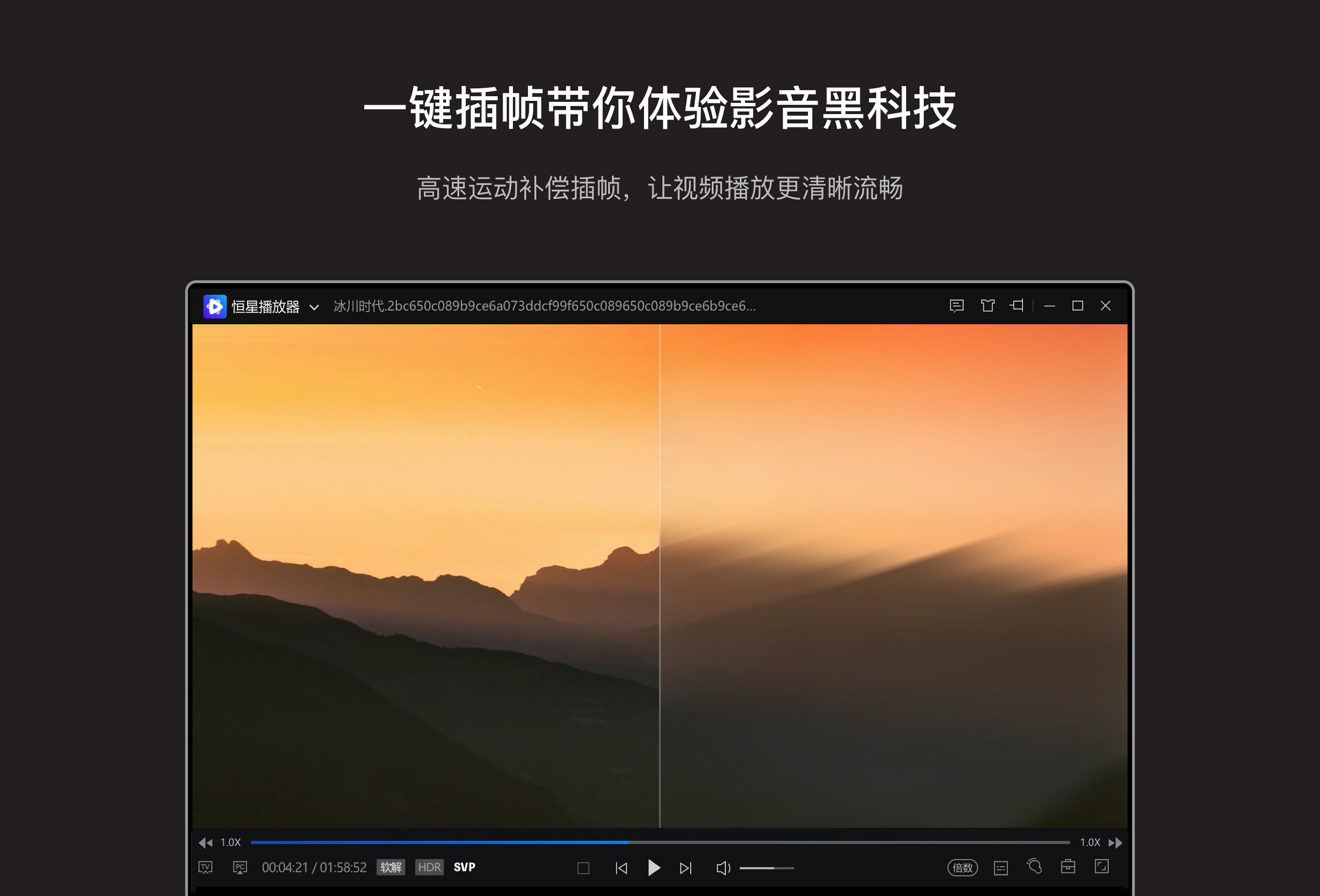 恒星播放器是一款免费、纯净的本地媒体播放器,支持播放各种格式的视频和音频,超高清真4K格式支持,蓝光HDR低占用解码,还支持iso文件直接播放,可为大家提供流畅舒适的高清视频影音观看体验,是我们必备的万能视频播放器。 1.万能解码,支持MP4, mkv, wmv, wma, flv, avi, rmvb, swf等。 2.一键插帧,提高视频帧数,看电影看视频更流畅丝滑。 3.一键投屏,支持手机投恒星播放器,恒星播放器播放视频投电视。 4.音频直通输出,可体验更加真实自然的音效。 5.文件管理,可对视频文件分类管理,查找更便捷。 6.还有倍数播放、字幕自动加载匹配、录制gif等其它功能等你来体验!