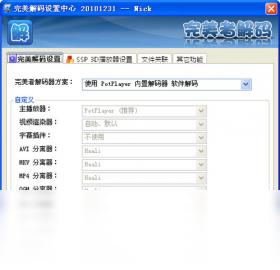 完美解码(完美者解码)是一款能实现各种流行视频、HDTV回放及编码的全能型影音解码包,自带 Media Player Classic、KMPlayer、PotPlayer 三款流行播放器,支持简、英语言平台下安装,能播放AVI、VCD、DVD、MPG、MP4、RMVB、TS、TP、EVO、M2TS、MKV、OGM、MOV、SCM、CSF、FLV等众多种格式的影音文件。