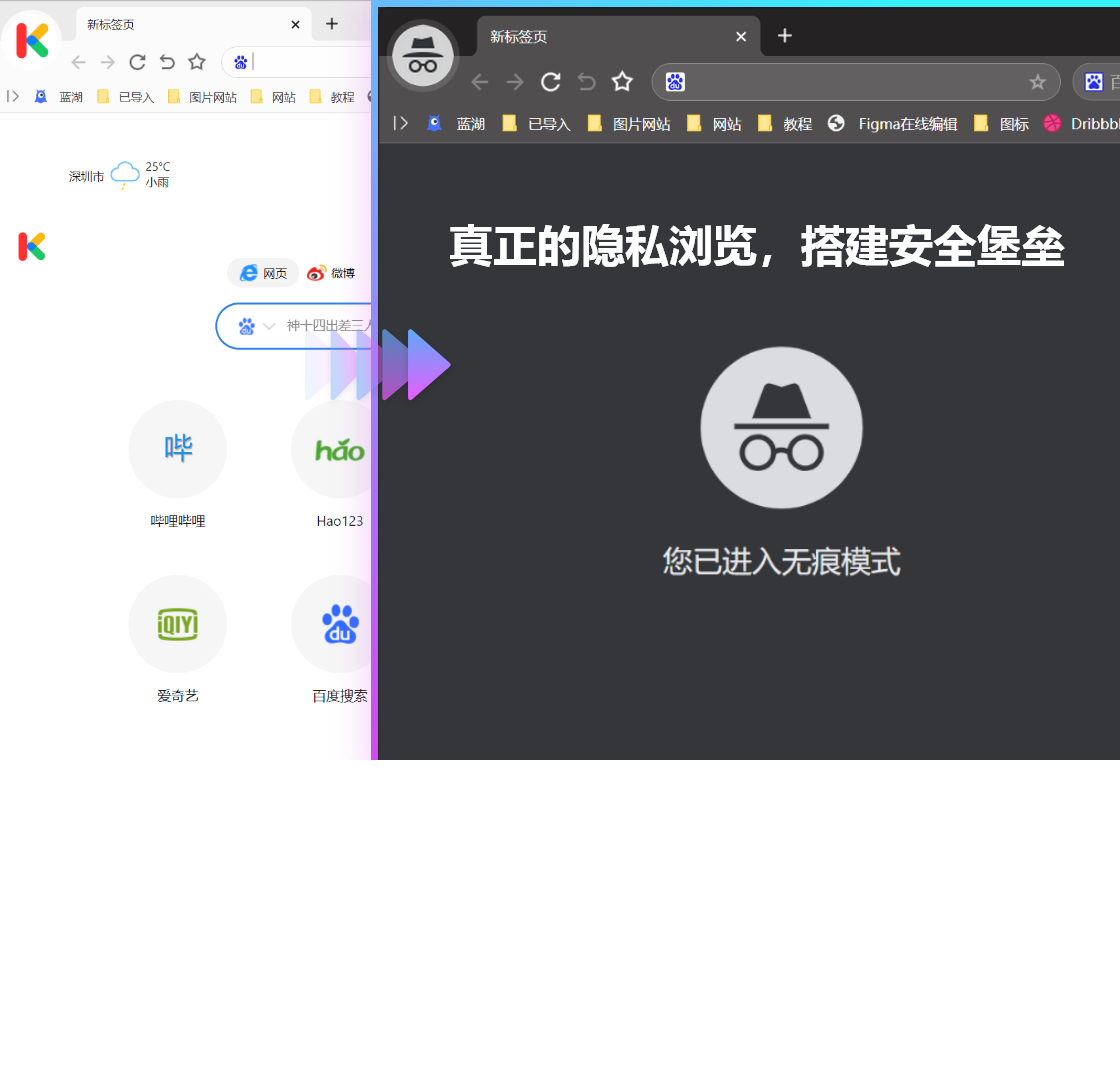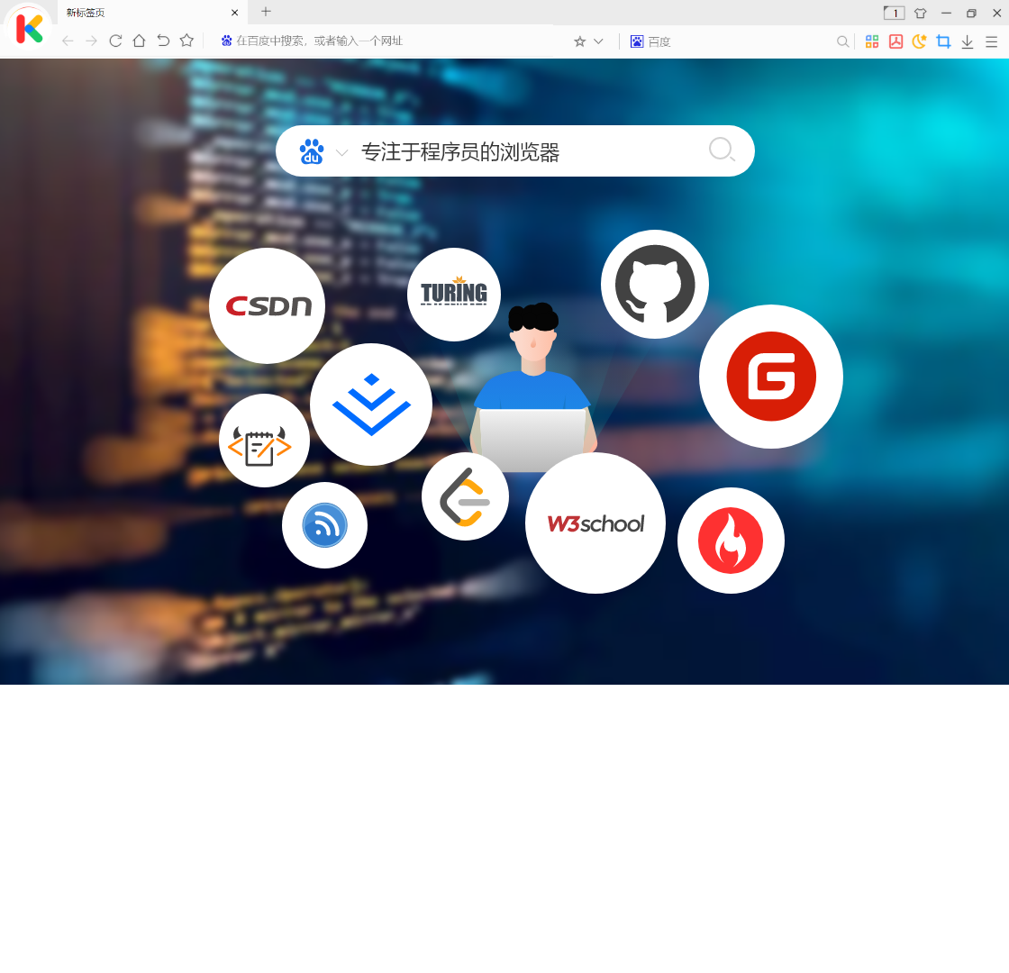 小K浏览器,是一款基于谷歌Chromium内核进行开发,拥有极速的网页浏览体验的浏览器。适用于多款Windows系统:Win11/Win10/Win8.1/Win8/Win7。该浏览器内置谷歌Chrome 101内核,性能更强劲,占用内存更低,速度与安全兼备,对程序员常用网站如CSDN、Gitee、Github、博客园、慕课网等进行提速,对github代码下载进行加速,拥有秒开网页的极速体验。提供自定义主页、天气预报、超级快搜、极速翻译、快捷鼠标手势、网页长截图、一键扫码分享网页等功能,并且支持域名分组、标签分屏等特色功能,快速提升工作效率;支持安装谷歌Google Chrome浏览器插件应用程序,可流畅访问哔哩哔哩bilibili、抖音、微博、腾讯视频、爱奇艺、优酷、芒果TV、天猫、京东等网站,同时推荐海量扩展程序,提供无限可能;支持QQ浏览器、火狐浏览器、Google Chrome浏览器、Edge浏览器书签导入;支持微信、QQ一键快捷登录,密码、书签、设置等信息云同步;相较于360浏览器、UC浏览器、猎豹浏览器、QQ浏览器等,小K浏览器界面简洁,纯净无广告,安全不窃取隐私,为用户保驾护航,是一款用户需求与体验至上的极简浏览器。
