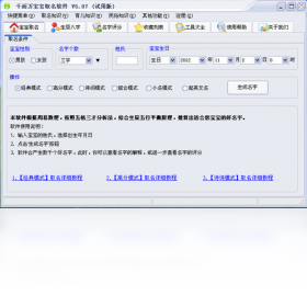 软件根据生辰八字、五格三才分析方法均衡各方面的重要程度进行综合分析。从9000多万名字中自动推荐出100分的好名字,本软件还将给出名字的详细解释,使每个人都能成为取名专家。