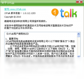 专注于通话和短信等主要功能的网络通讯软件。19talk占用空间小,功能简洁实用,专注于语音通话和短信,通过电脑和耳麦就可以直接拨打国内任意固定电话、移动电话或者小灵通电话。短信群发功能、通讯录功能以及在线充值功能等,众多细小却实用的功能,使用起来更方便。