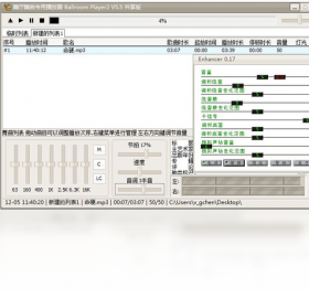 简单明了的界面,实用灵活的设置,低资源高效率的解码器,变速,变调,节奏宽范围调整,变速不变调,完全自主自动的播放控制为舞厅舞曲播放量身打造的舞曲播放器。