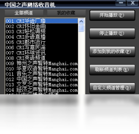 中国之声网络收音机是一款精致的网络收音机软件,它能够收听到数百个电台频道,并且音质十分清晰,让您方便的收听新闻、音乐等节目。本软件方便易用,是您工作和学习必不可少的伴侣。