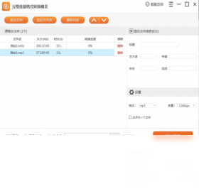 云橙音频格式转换精灵是一款音乐音频格式转换软件,集合了音乐格式转换、音频格式转换、音乐合并、音频合并、视频音频提取等多种功能,支持常见音频音乐转换格式:mp3/mp2/wav/wma/m4r/m4a/ac3/aac/ogg/flac/aiff。