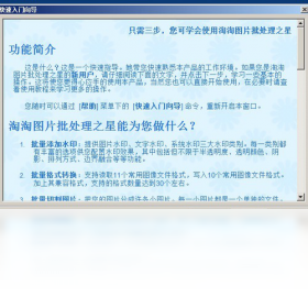 淘淘图片批处理之星是一款操作简单、方便实用的全功能图片批处理系统。包括批量格式转换、批量脚本处理、批量文件改名、批量调整尺寸、批量制作缩略图、批量压缩JPG、批量合并图片、批量添加背景、批量截取图片、批量切割图片、批量上传文件、创建PDF文件、创建多页TIF、创建电子相册等功能。本软件提供近30种图像脚本处理命令(如调整对比度、添加水印等)供您任意组合使用!还可以让您轻松的将任意多的图像文件生成一个电子相册,并提供多达150种的动画显示效果,方便您欣赏自己的图片,并轻易实现与家人、朋友分享。