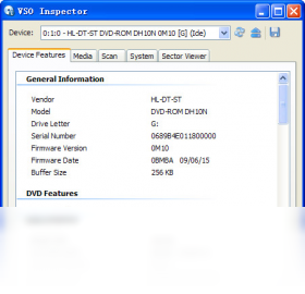 VSO Inspector是一款DVD光驱、刻录机的硬件信息报告工具。可以向您报告您的DVD光驱、刻录机的硬件信息,及具体支持的读取、刻录等功能,还能检查光盘是否存在读取错误。