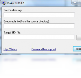 Make SFX 是一套 Win32 平台下能让您制作自解压缩档案的免费程式。只要三个步骤您就可以建立 SFX 模组:选择您想压缩到 SFX 模组的档案的来源资料夹。从来源资料夹选择可执行档,这个档案将在SFX解压后执行。输入目的SFX 档案名称。