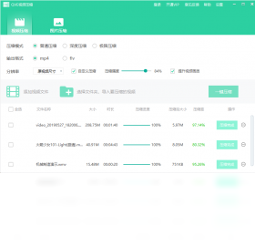 QVE视频压缩一款非常实用的视频压缩软件,能够将各种视频压缩成mp4、flv等格式,缩减视频体积,释放磁盘空间,节省网络带宽。压缩后能够保持视频高清晰度,压缩率高达90%以上,压缩速度快,支持一键压缩,批量压缩等功能。
