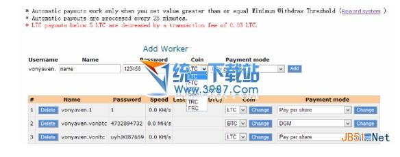 以coinotron为例。在注册完成后,自定义一个矿工号和密码,并选择LTC。