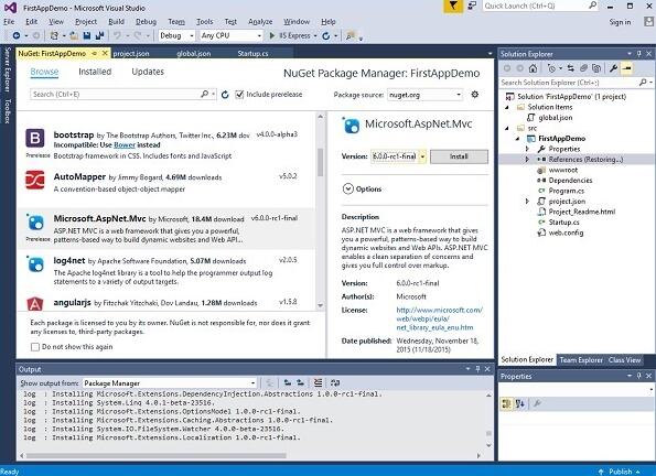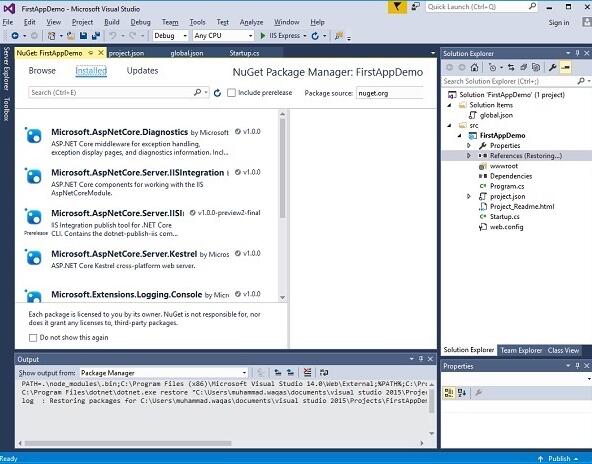 此版本的 ASP.NET Core,依赖关系都是通过NuGet包管理器管理。