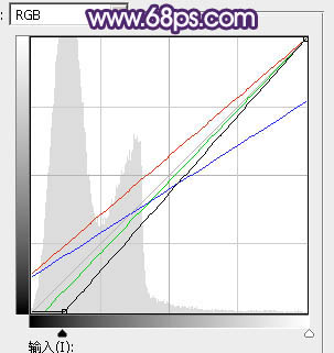2、按Ctrl + Alt + 2 调出高光选区,按Ctrl + Shift + I 反选得到暗部选区,然后创建曲线调整图层,对RGB、红、绿、蓝通道进行调整,参数设置如图3,效果如图4。这一步把暗部稍微调暗,并减少高光区域蓝色。