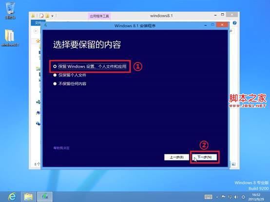 8. 默认选择“保留Windows设置、个人文件和应用”,再单击“下一步”;