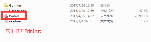 1、把驱动安装文件拷贝到电脑中,找到相关文档,双击打开“PrinInst”;