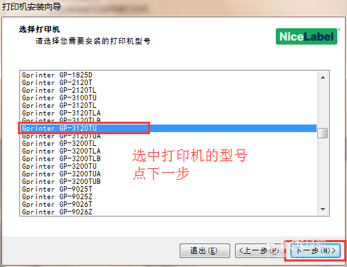 3、选择您需要安装驱动的条码打印机型号,点击“下一步”;