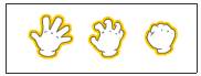 (5)再创建一个影片剪辑,命名为“gotgood_mc” ,在该影片剪辑内插放3个关键帧,绘制3个手型,如图1- (1)、(2)所示。再创建一个影片剪辑,命名为“MouseHand”,同时设置扩展元件类也为“MouseHand” ,将影片剪辑“gotgood_mc”元件对象放置于此,并命名实例名为“gotgood_mc”,如图13-5所示。